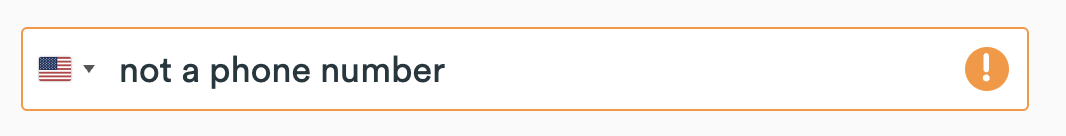 Partial Validation (Orange if not a required question): If you've enabled validation, but not made this a required question, we show an orange warning for malformed phone number according to each country (e.g., an invalid number) but does not block progress.