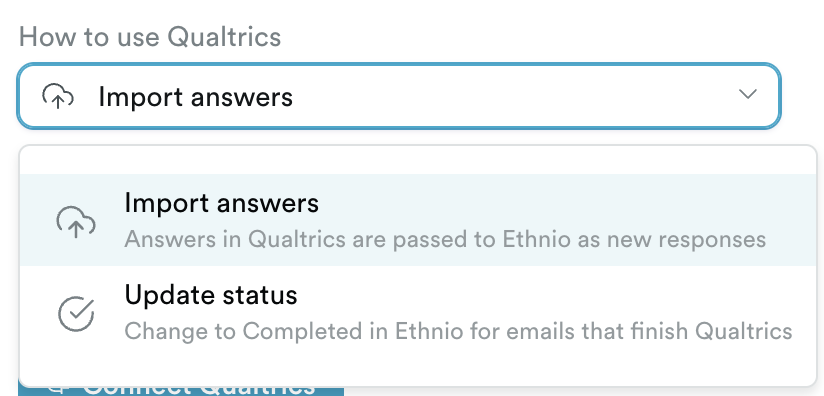 Most customers will want to have Qualtrics responses appear autoamtically in an Ethnio study. In the case where you do not want the survey responses to come into Ethnio and therefore potentially update your Pool participant records, you can select "Update Status."