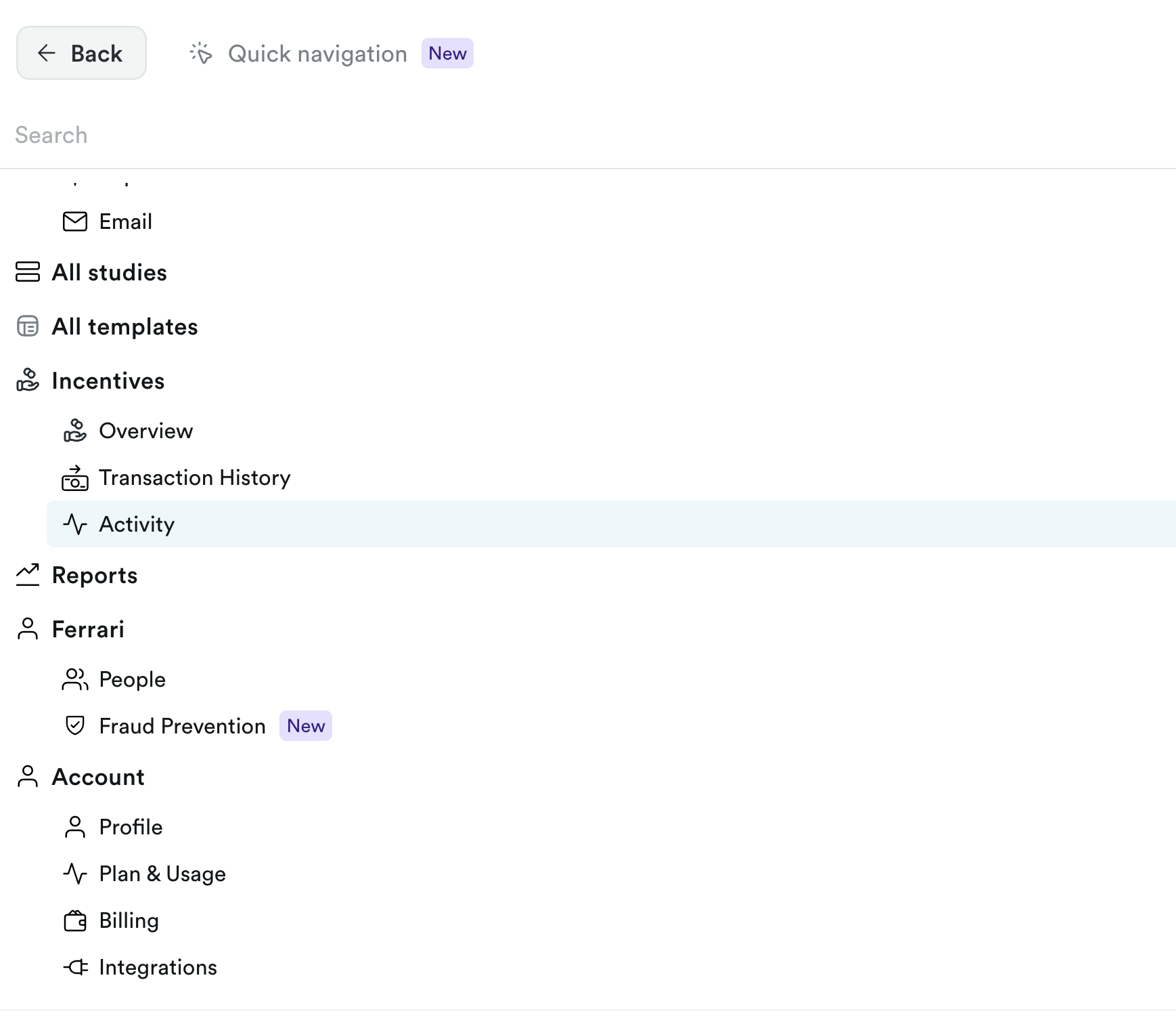 For key pages around Ethnio, you can also type the name of the page and jump straight there from smart search. For the full current list, tap smart search and then Quick navigation